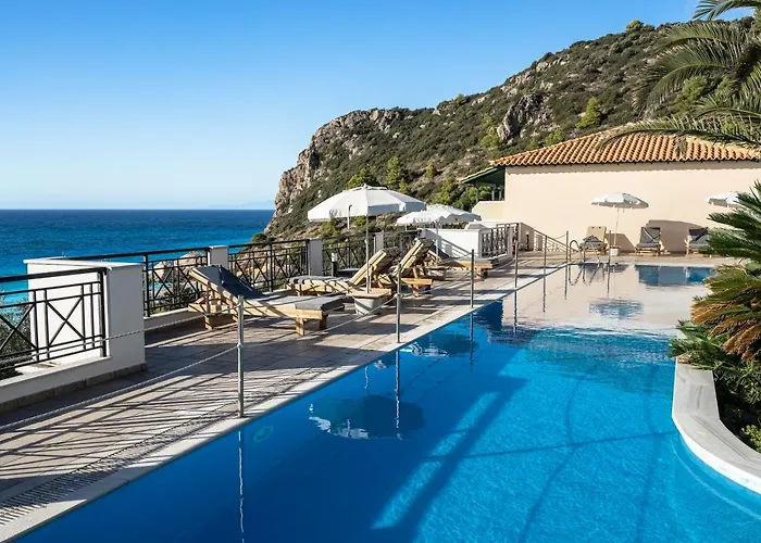 Пляж Милос находится в нескольких минутах ходьбы от этих пляжных апартаментов.
